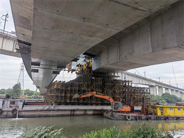 鋼箱梁分左右兩幅,材質為Q345qD,左右幅橋鋼箱梁重量為1898.6t。采用兩側帶挑臂的等高度單箱單室結構,平面位于圓曲線上,外側箱梁中心線圓曲線半徑R877.25米,內側箱梁中心線圓曲線半徑R862.75米;鋼箱梁主要由頂板、底板、腹板、橫隔板、橫肋及各自的加勁肋組成,外型幾何尺寸與砼箱梁保持一致,橋面設3%單向橫坡,橫坡指向曲線 內 側,箱梁中心線處梁高4.1米單幅鋼箱合段GL1和GL1梁段長5300mm重70t。左幅面跨中合批段長83133mm,右幅長81667mm。箱體及節段間連接全部采用焊接。
